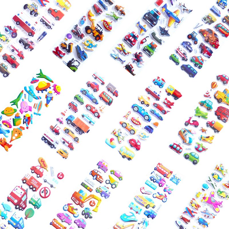 - VARIETY VIVID DESIGNS: Over 300 multi-dimensional kids cars stickers with all kinds of feature car, train, police car, airplane, fire trucks, helicopter, ambulance, motorcycle, school bus, spaceship, rocket, bulldozers, dump trucks, concrete trucks, cranes and more!A great tool for teaching your little one about vehicles.