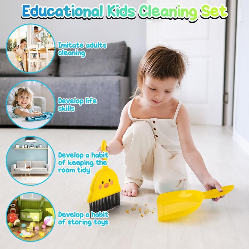 - Educational Toddler Cleaning Set---This toddler cleaning toys is a must-have pretend play toy for toddlers. Involving your child in household chores not only teaches them to clean up their play area, but also helps develop good habits of keeping their room tidy and making them more independent. It's a great way to teach responsibility and make cleaning enjoyable for kids.