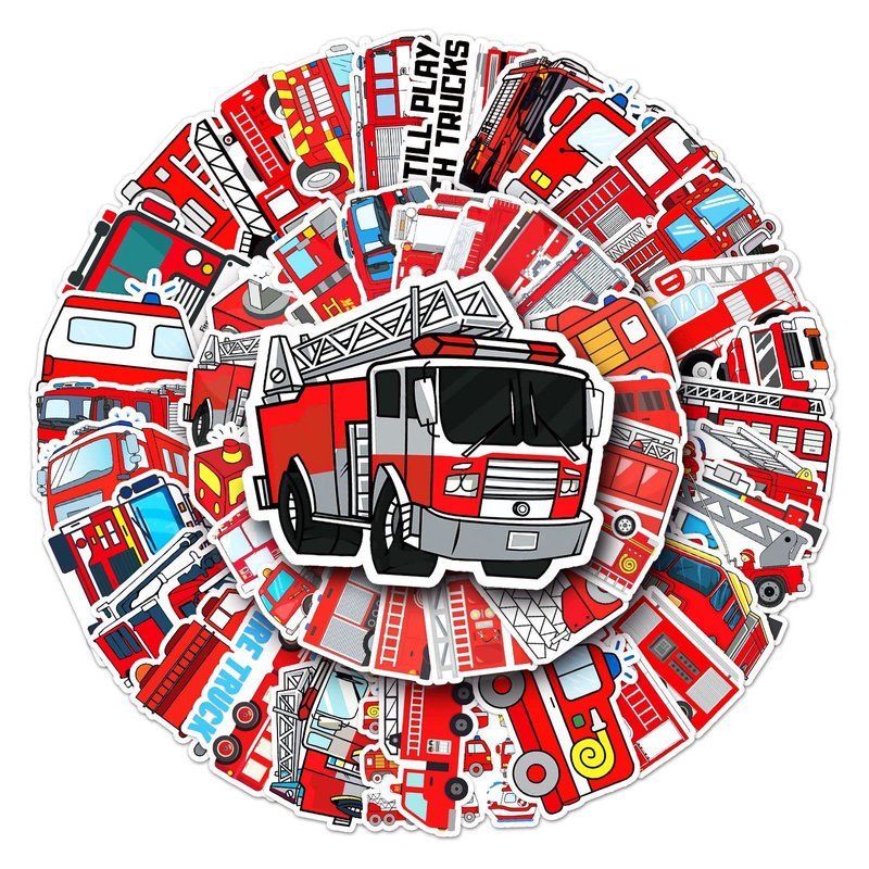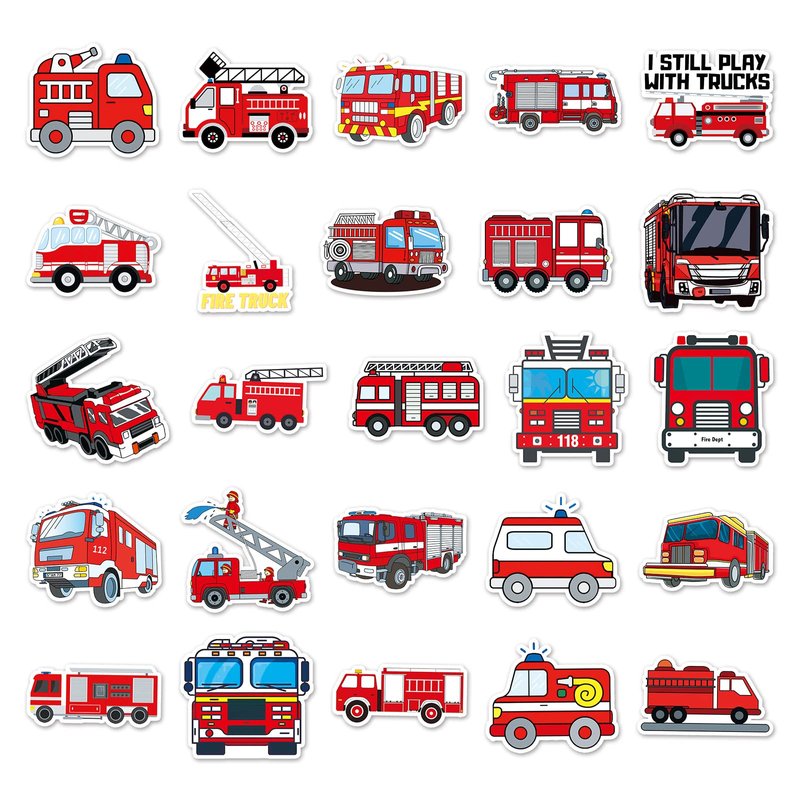 - 50Pcs Cartoon Fire Truck Stickers:The cute Fire Fighting Engine Vehicles stickers including 50 pieces patterns. All the Stickers are clear patterns.Personalized Pattern perfect for Kids Gift