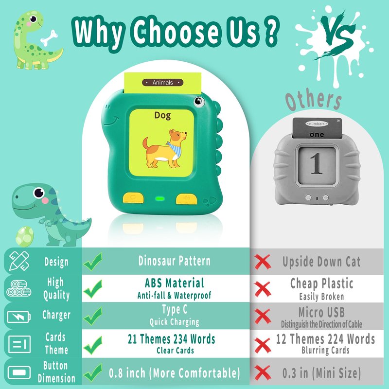 Talking Flash Cards for Toddlers, Dino Speech Therapy Toys for Toddlers 1-3 Autism Sensory Toys 228 Sight Word Montessori Learning Toys Gifts for Kids Boys Girls Baby Aged 0 1 2 3 4 5 Year Old Audible Educational age 2-4 Years Preschool 6 birthday Christmas 2+ resources 3-4 books Parent Child Interaction tummy time activities essential pocket speech kindergarten outdoor autistic 0-2 1-2 3+ 1 Kids Toddler Talking Flash Cards with 224 Sight Words,Toddler Toys for 2 3 4 5 Year Old Boys and Girls,Talking Flash Cards,Speech Therapy Toys,Preschool Learning Educational Toys