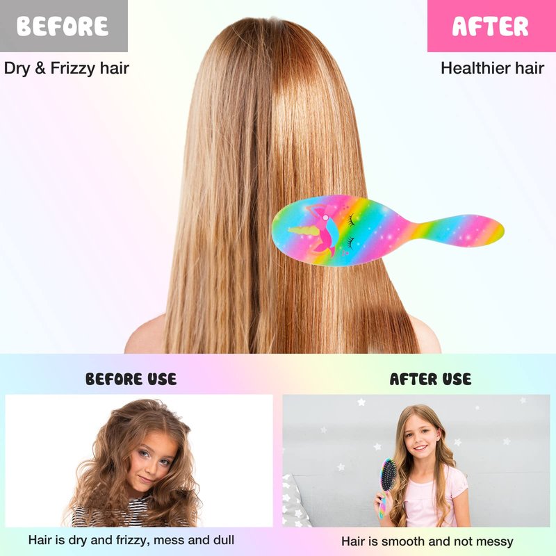 Kids Hair Brush Girls, Toddler Wet Dry Detangling Hair Brush for Curly Thick Hair Pain-Free Comb Girls Kids Women Unicorn Mermaid