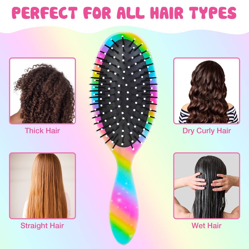 - All Hair Types: The rainbow unicorn kids hair brush is great for curly, thick, thin, long, short, wet or dry hair. Safe for kids and girls alike, the rubber cushion is incredibly gentle, ensuring a pain-free experience