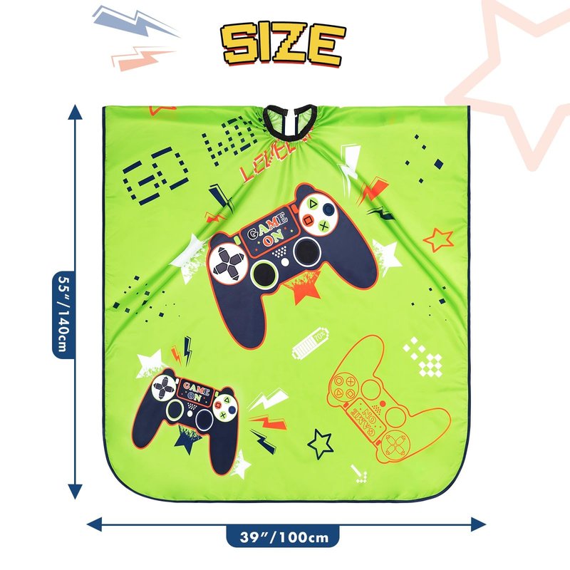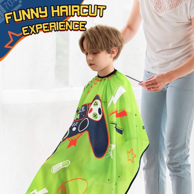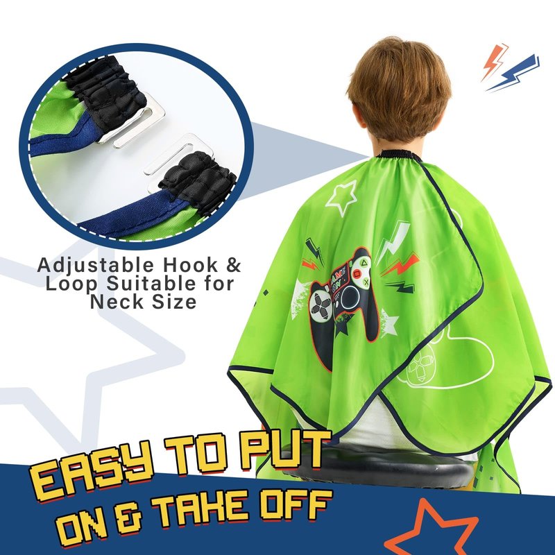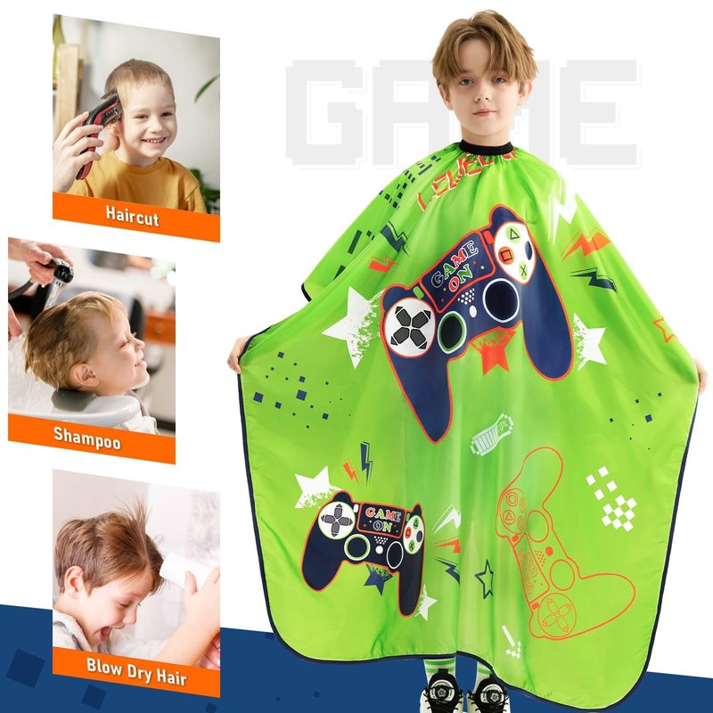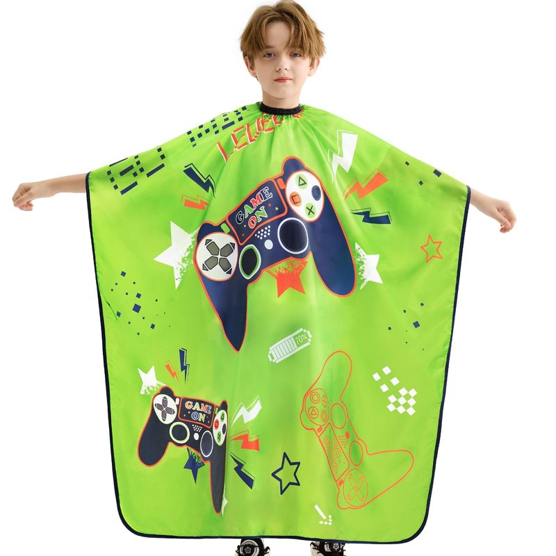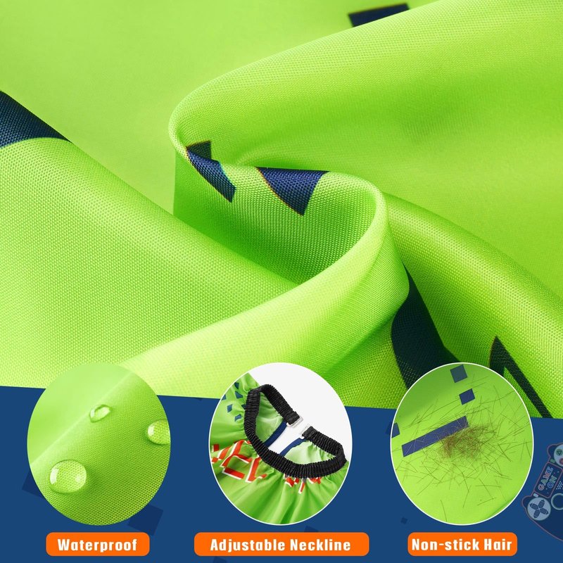 Kids Haircut Cape Waterproof Barber Cape Toddler Hair Cutting Cape for Boys Girls Haircuts Salon with Adjustable Snap Closure (Game Green)