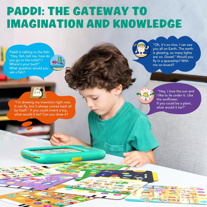 - The Perfect Gift and Preschool Learning Companion: PADDI is not just an educational tool; it’s the ideal gift for children.Its engaging design and diverse themed activities make it perfect for birthdays and special occasions.Additionally,educational toy serves as an excellent companion in preschool classrooms,helping educators introduce fun,interactive lessons that nurture essential skills such as creativity and emotional intelligence in young learners.More than a toy, it's a learning journey.