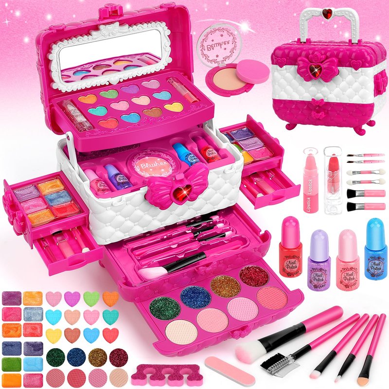 Kids Makeup Sets for Girls, Washable Kids Makeup Kit Girl Toys, Real Girls Makeup Kit Princess Pretend Play Cosmetic Set, Birthday Gifts Christmas Toys for Girls 3 4 5 6 7 8 9 Year Old