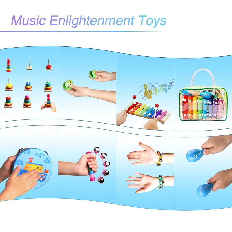 - 🎵Well Made wooden Musical Toys,Easy For Hold And Play With:These kids musical instruments are all made of high quality material,like wood,plastic,metal,etc.Easy to grip and not overly loud. Really helps Toddlers understand his hand motions.And just smiles so much with these musical toys.Sturdy and great noisy gift.Good for supervised play and very suitable for children over 3 years.