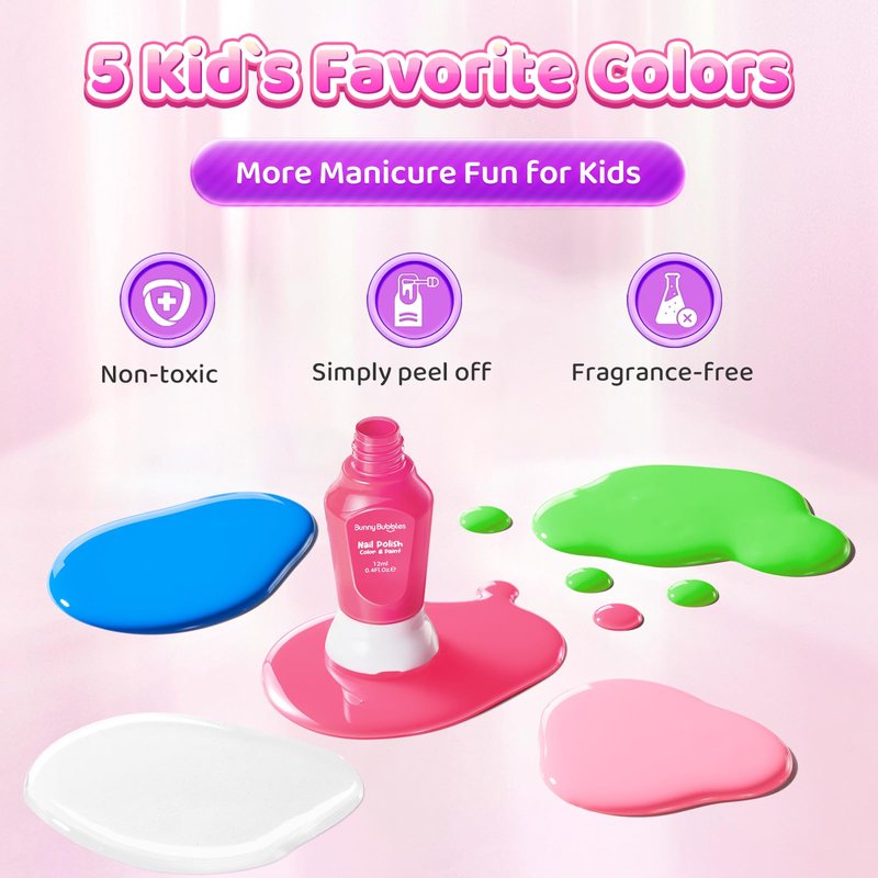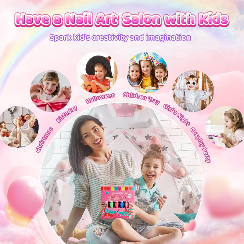 Kids Nail Polish Kit for Girls Gifts- Nails Art Makeup Toy Set for Kids Christmas Birthday Gift for 7 8 9 10 11 12 Year Old Girl's Party Cosmetic, Gel Nails Polish Manicure Girl Stuff by BUNNY BUBBLES