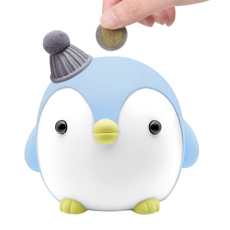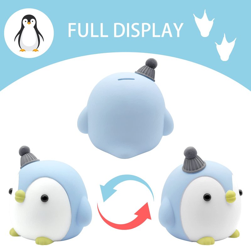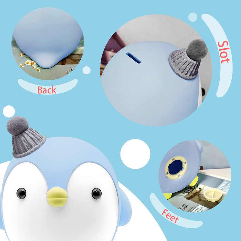 Kids Piggy Bank, SAYTAY Cute Cartoon Penguin Anti-Fall Coin Bank, for Children Adult Gift Or As Home Decoration (Blue)