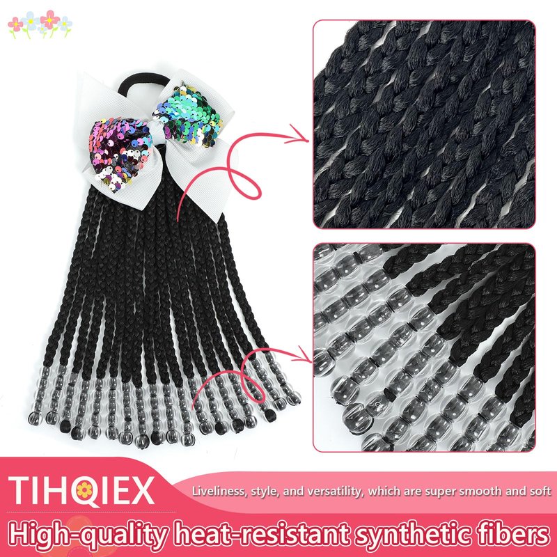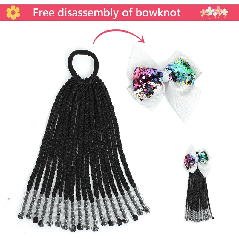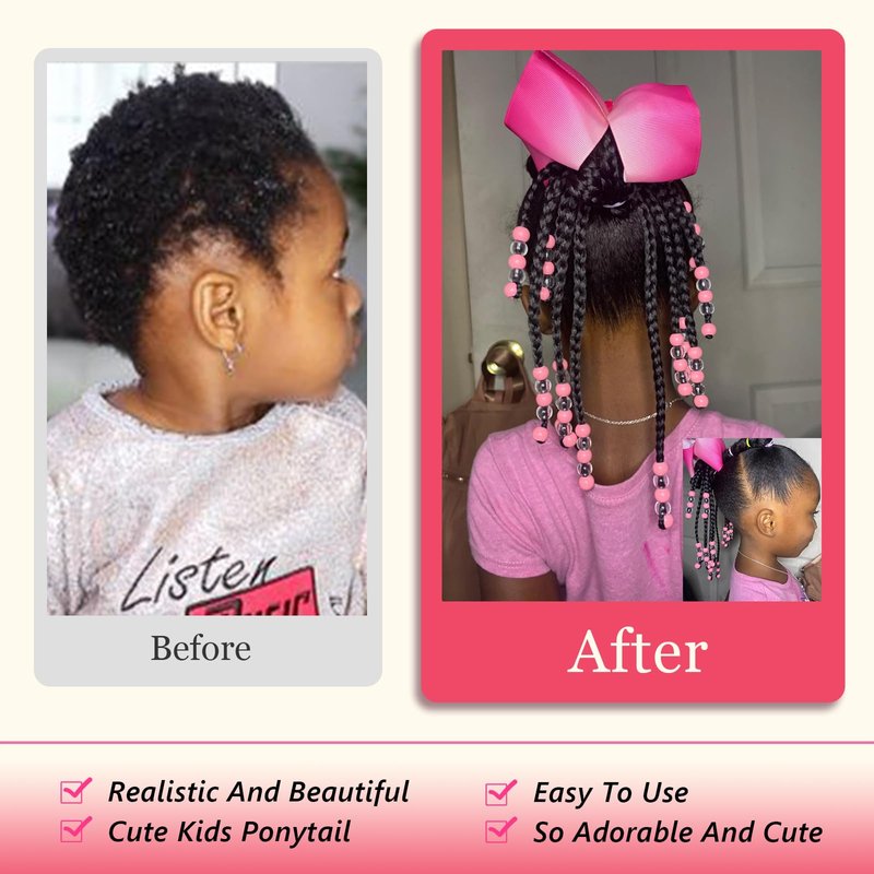 - Kids Ponytail Extension High Quality: Made Of High Quality Synthetic Fiber And Soft Elastic Band, The Hair Braids Is Super Silky, Soft And Lightweight, No Tangle, No Shedding. Each Ponytail Has 18 Individual Braids, Each Containing Vibrant Beads That Match The Bow Color.