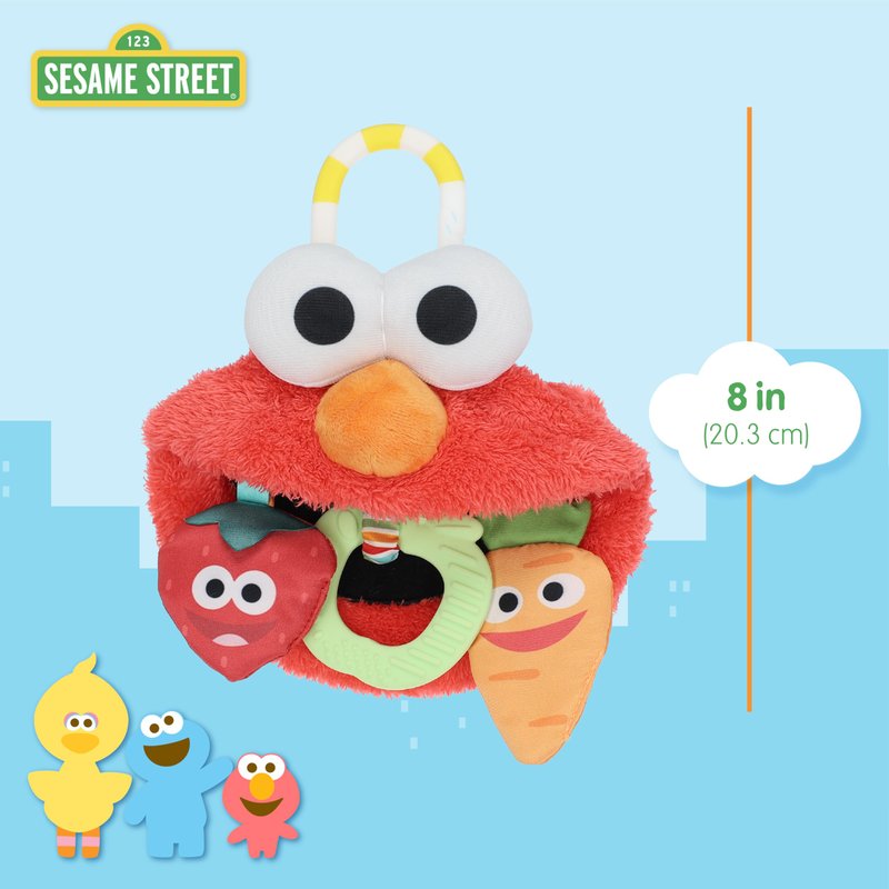 - MULTIPLE TEXTURES FOR TEETHING: The Sesame Street Elmo on-the-go teether toy features a silicone apple teether, plush strawberry that squeaks, and a crinkly plush carrot, providing multiple textures to soothe and stimulate your baby's gums during teething.