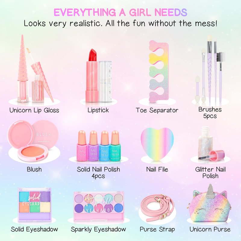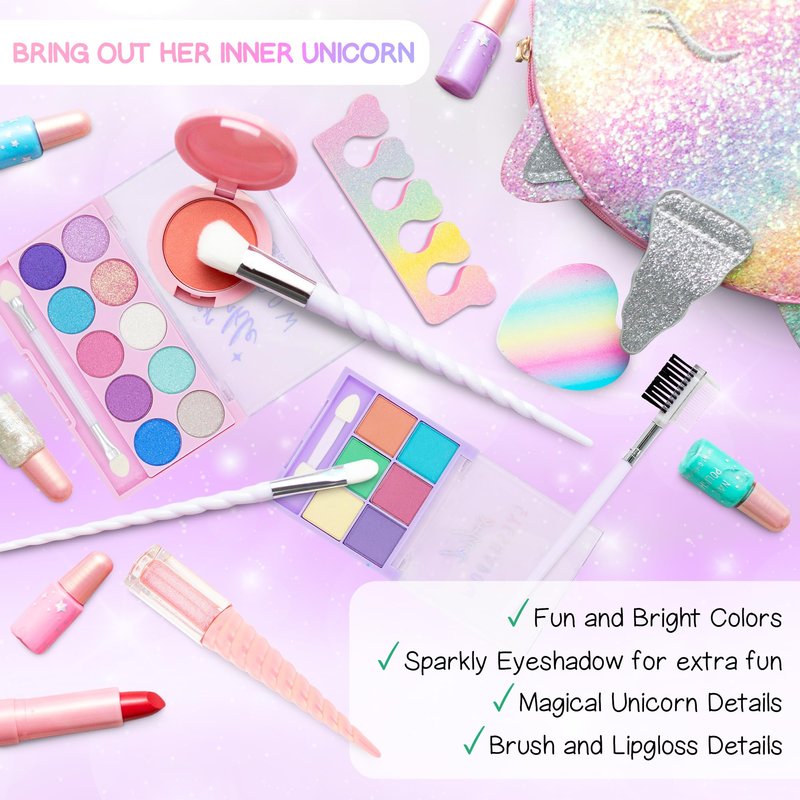 Kids Real Makeup Kit for Girls: No Talc, Washable Make Up Set with Unicorn Purse - Toy Gift for Little Girls & Toddlers Age 3 4 5 6 7 8 9 10 11 12 Years Old - Pretend Play Birthday Gifts