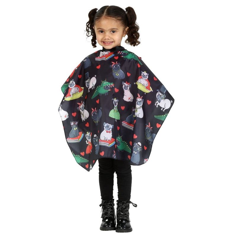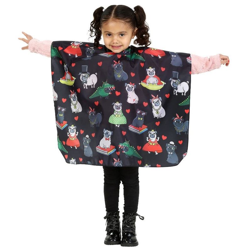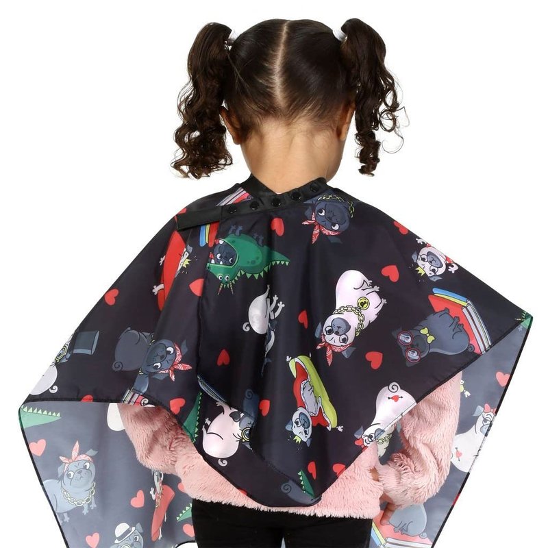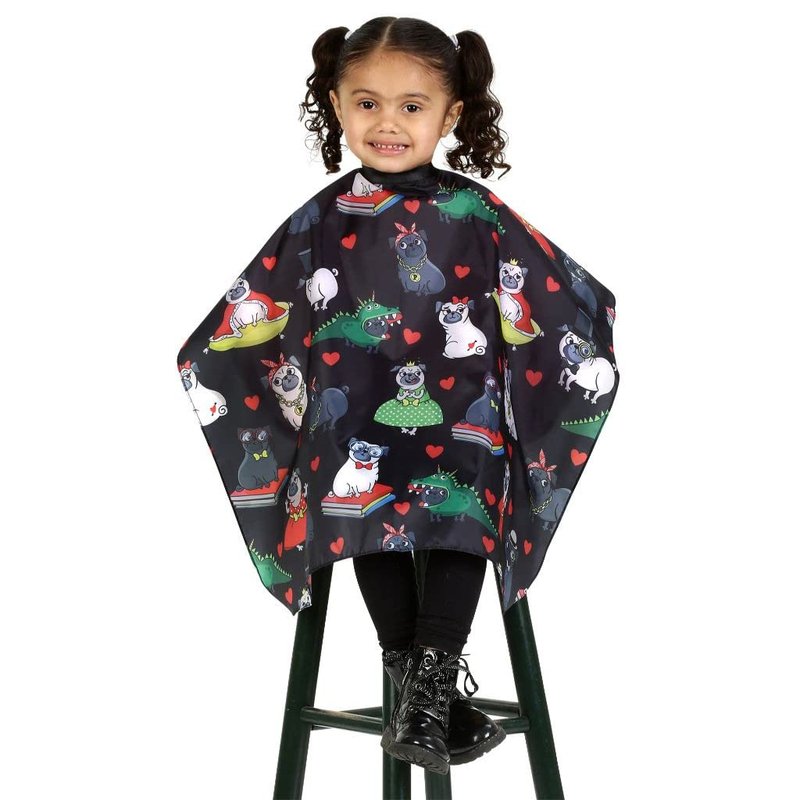 KIDS BARBER CAPE - Whether your take your child to the barber or to a professional hair salon, this barber cape for kids will make that haircut much more fun. FUN PATTERN- Hair cutting kit with a Pug animal pattern. Great to get kids interested in getting stylist haircut at home or going into the salon/barber shop. KEEPS CLOTHES CLEAN- this apron is water resistant with multiple plastic snaps for different sized necks. It clasps close to the neckline to keep your child's clothes dry and hair free. Use this barber case for putting on makeup or face paint while nicely dressed to keep the child's clothes clean without hassle of having to change their outfit!again. PERFECT FOR YOUNG KIDS- Give your kids or clients a choice of a fun pattern with their interests. The hair stylist apron/cape is perfect for little boys and girls. Barber apron recommended for toddlers and young kids. KID FRIENDLY- The more fun patterns they have to choose from the more likely they will enjoy getting their hair cut. Make the parents have an easier experience.