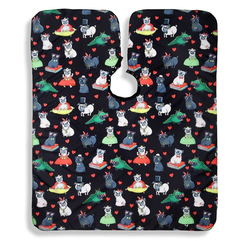 Kids Size Pug Barber Cape For Hair Cutting at Home or Professional Salon, Barber Shop Hair Cutting Cape Adjustable Neck with Plastic Snaps, Big Girl
