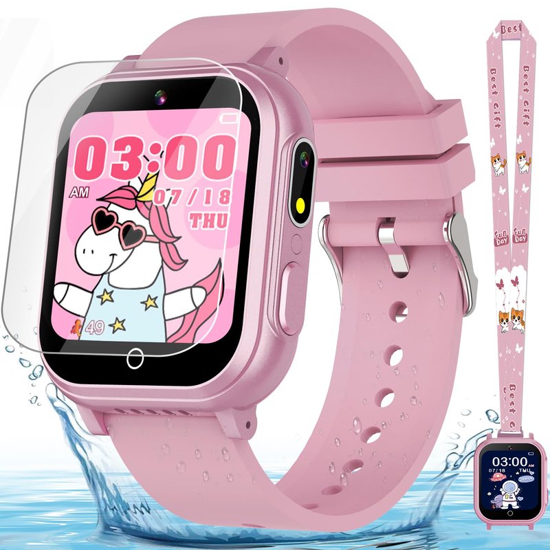 Kids Smart Watch Gift for Girls Ages 3-12, IP67 Waterproof, 32 Puzzle Games, HD Touchscreen Dual Camera Vedio Pedometer Music Player, Kids Watch Toy Birthday Gifts for Girls Ages 5 6 7 8 9 10 (Pink)