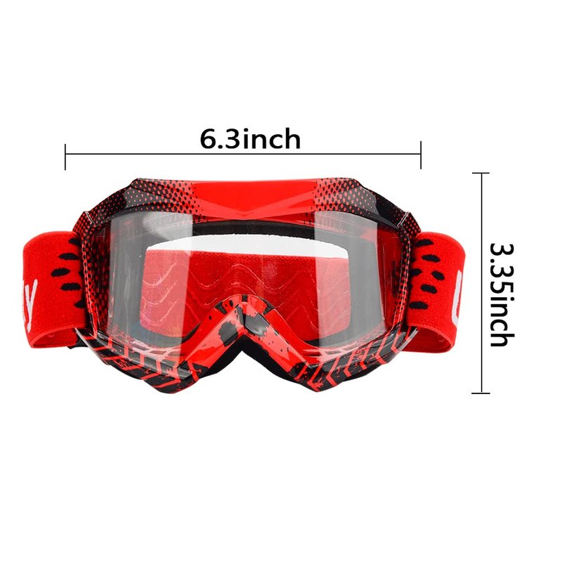 Generally suitable for children aged 3-12.It depends on head size, the min circumference of the dirt bike goggles is 21inch/53cm,the Maximum head circumference is 29inch/74cm,and the diameter is 6.3inch/16cm. Please adjust the elastic strap before the best using.