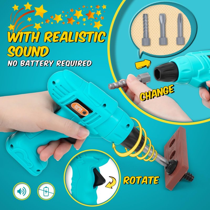 - Realistic Tool Functions: Toddler tool set includes a pretend drill tool that simulates the sound and movement rotation when pressing the button (No battery needed). Various functional play tools will keep your boy or girl busy for hours of fun and learning how to use daily tools.