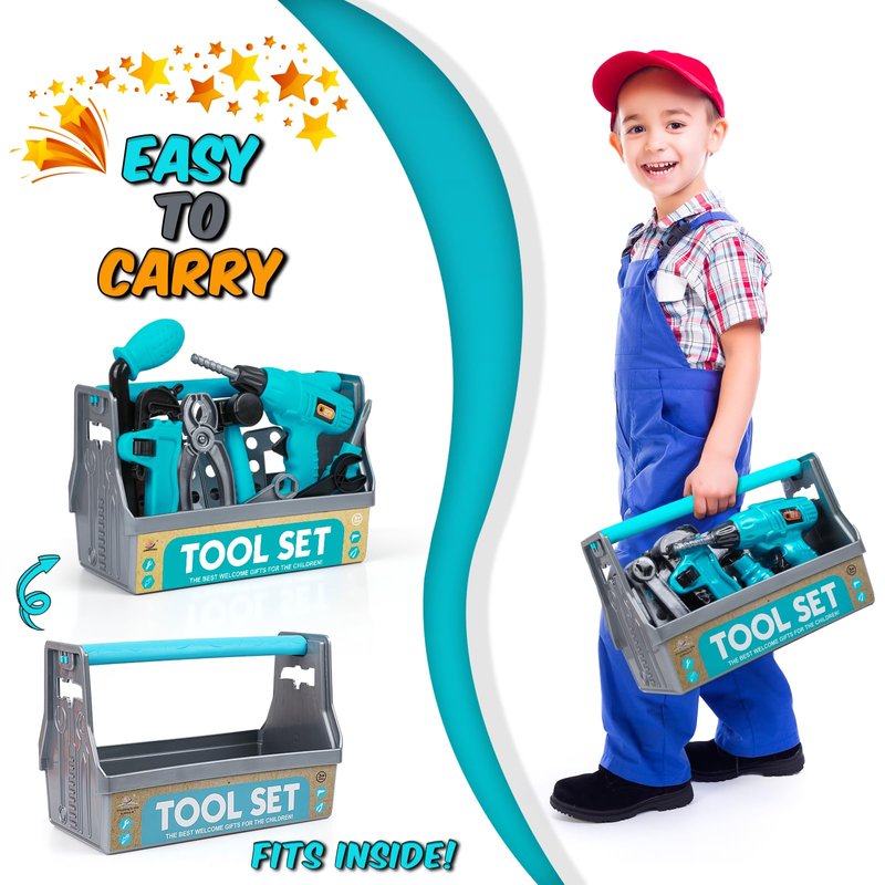 - Portable Storage Toolbox: The toy tool set comes with a portable kids tool box for easy storage just like dads' toolbox. And it encourages child to keep his or her toy tools organized and allows your kiddo to take the tools to fix any problem at home or on the go!