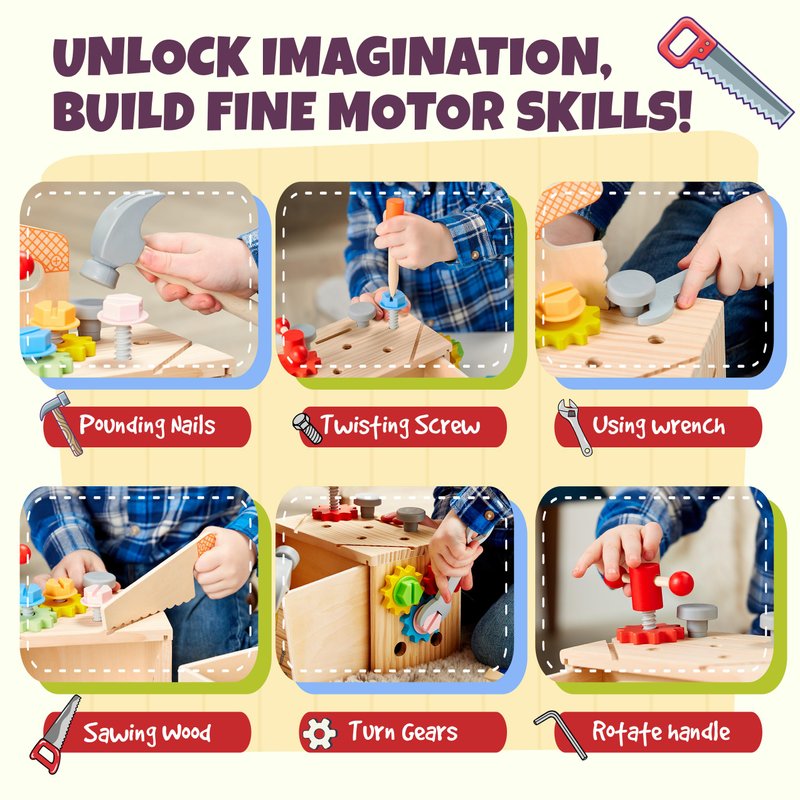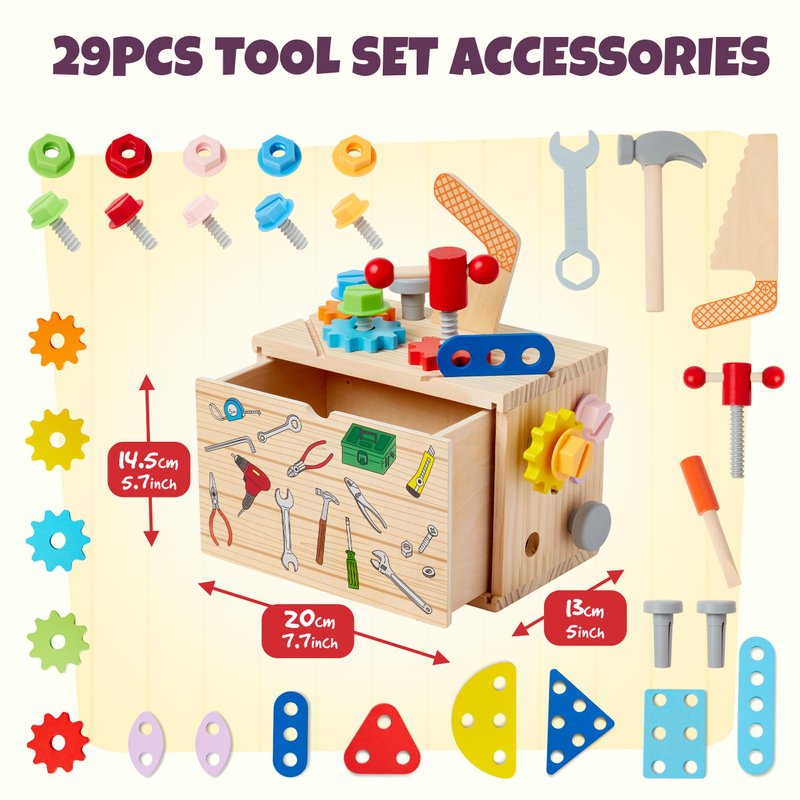 - Safe & durable: The kids tool box made with solid wood and non-toxic paint, featuring rounded edges for child safety during play.