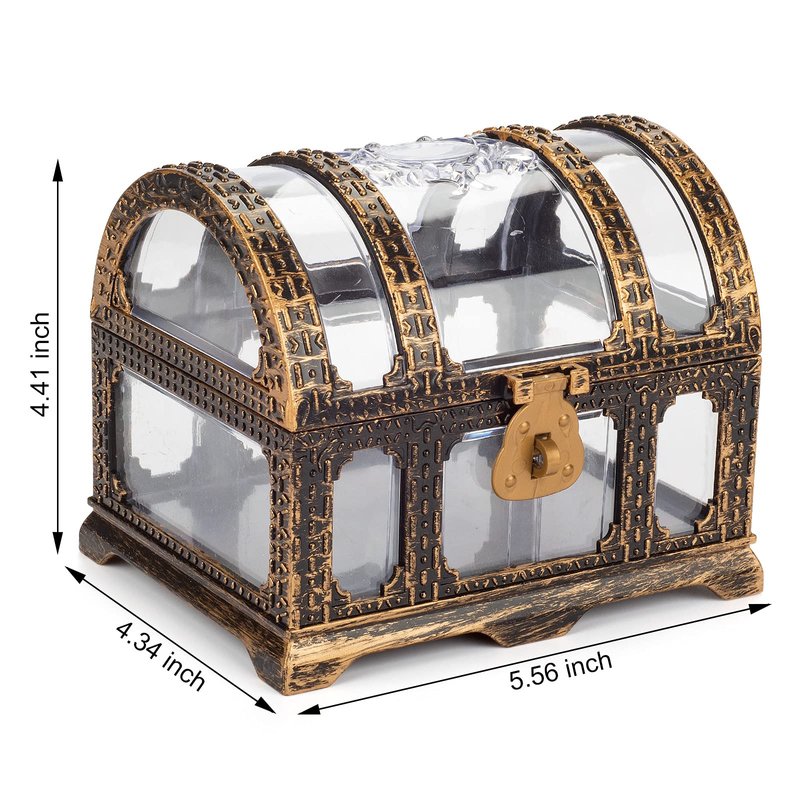 Kids Transparent Antique Pirate Treasure Chest,Plastic Treasure Chest for Pirate Party