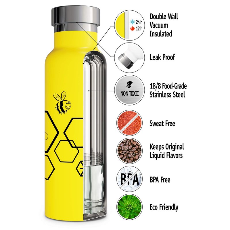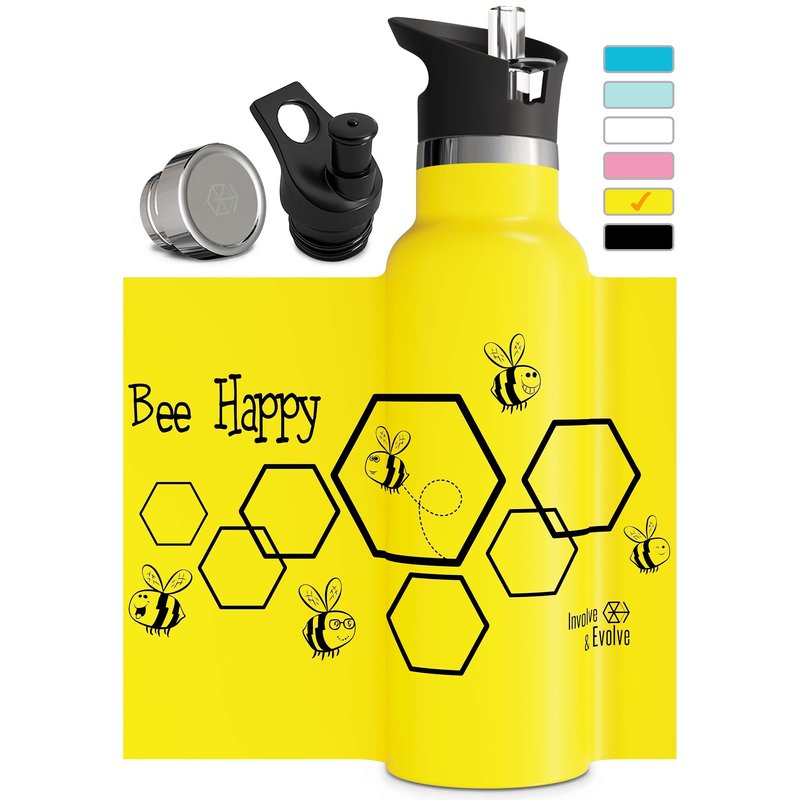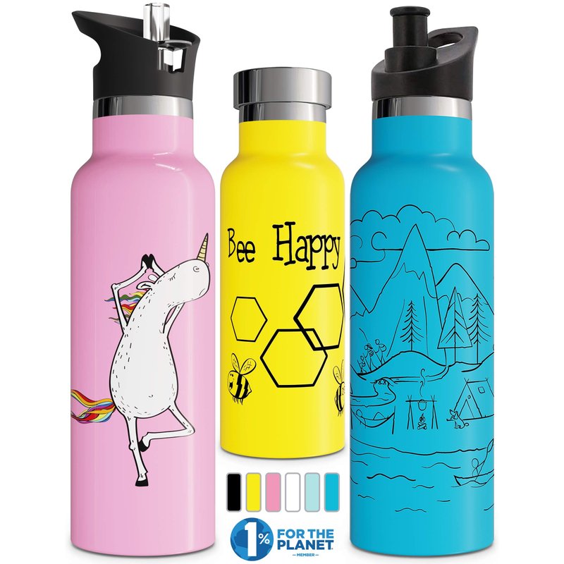 - FUN AND ENGAGING DESIGNS: Available in a variety of colors and playful prints, these water bottles make staying hydrated exciting for kids and adults. Choose from vibrant patterns that you will love: Bee Happy, Unicorn, Camping, Running Man, Tree of Life.