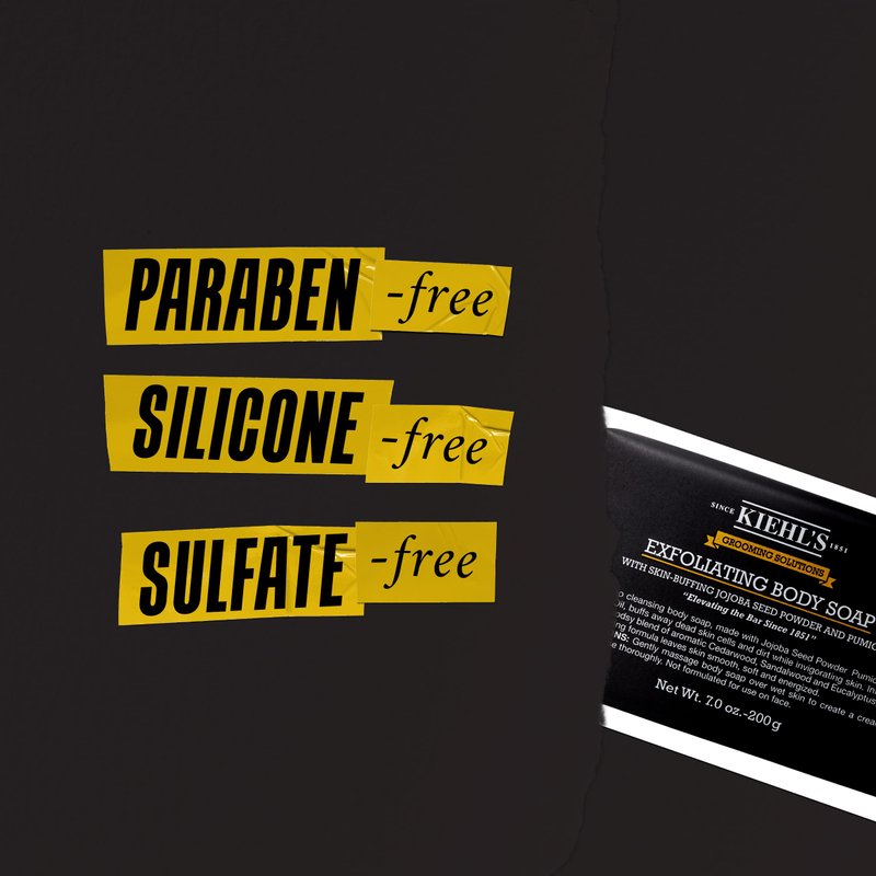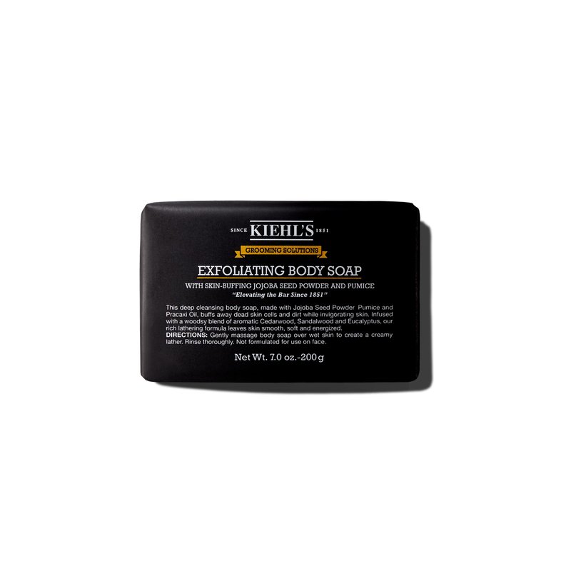 Kiehl's Grooming Solutions Exfoliating Body Soap is an exfoliating body soap with Pumice, Jojoba Seed Powder and Pracaxi Oil. Infused with a woodsy aromatic blend, this bar soap for men energizes and invigorates skin leaving it feeling soft, smooth and energized. For men’s skin.