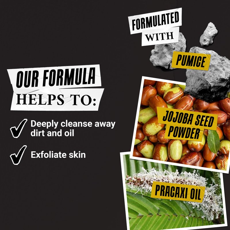 - Infused with Pumice, Jojoba Seed Powder and Pracaxi Oil that contains the highest known concentration of Behenic Acid, known for its moisturizing capabilities.