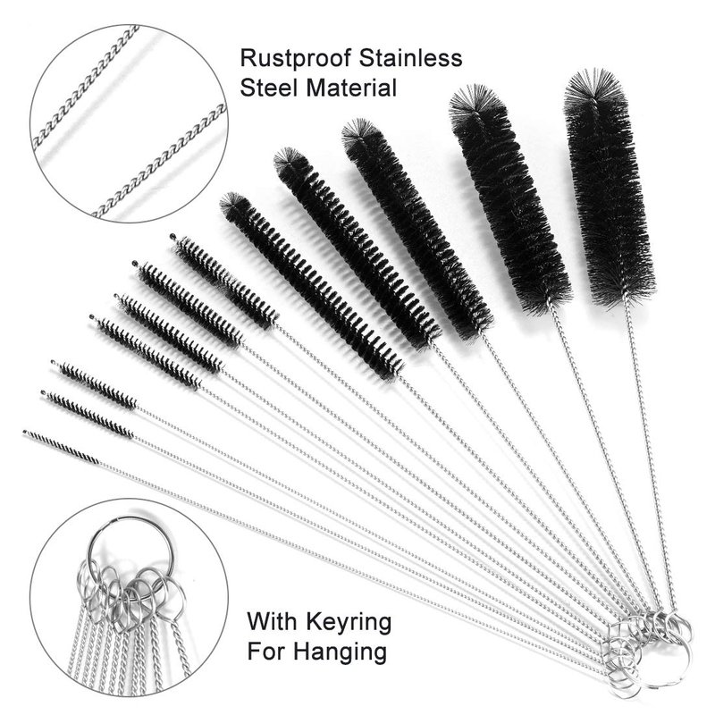- ☞ These small bottle brushes for cleaning narrow neck are specially designed for a multitude of home uses with a comprehensive selection of sizes.They are small bottle cleaning brushes that are longer than other brand’s products for water bottle cleaning with stiffer bristles at the end of the handles and stiffer handles for efficient cleaning.