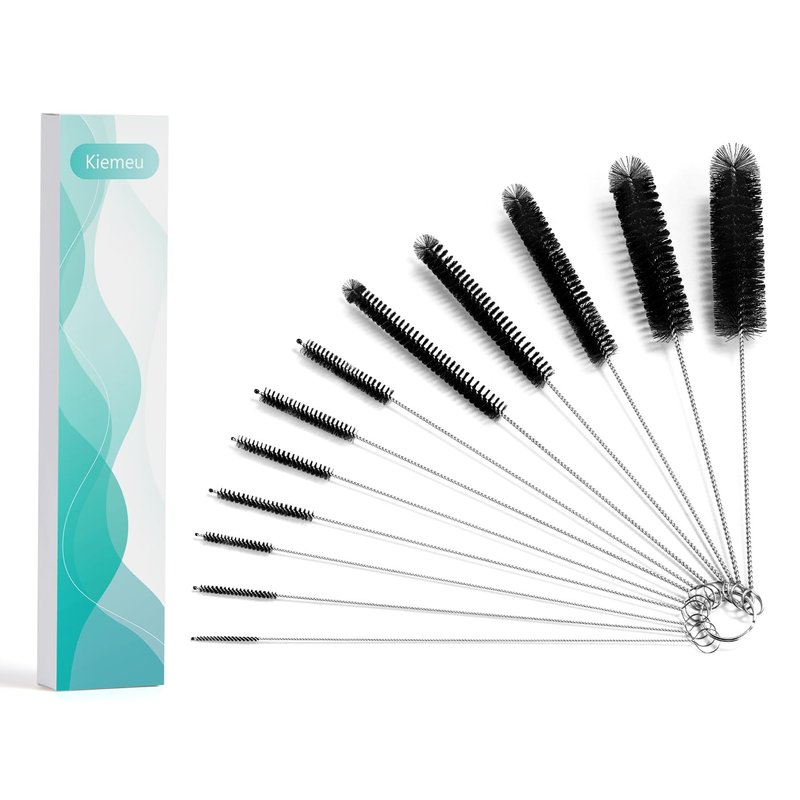 Kiemeu tiny bottle brushes for cleaning are made of high quality and specially designed for a multitude of home uses due to a longer length and stiffer bristles and handles.They are ideal for cleaning those tight small holes,crevices,ridges,crannies,gaps as well as pipes,tubes,hoses,nozzles,spouts and vents.In particular,we can use these premium pipe cleaning brush for straws drain holes in fridge, crannies in shower cubicle,teapot and kettle spouts,baby teats,water bottles and so on.