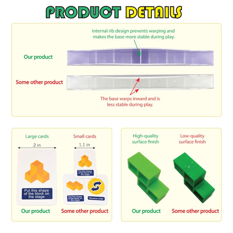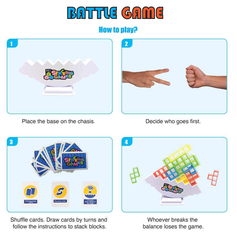 - [Fun Game for All Ages] This stacking game is entertaining to play for kids (3+), teenagers, and adults. When played in battle mode with 2+ players, it is very engaging and promotes social bonding among parents-kids, friends, and co-workers.