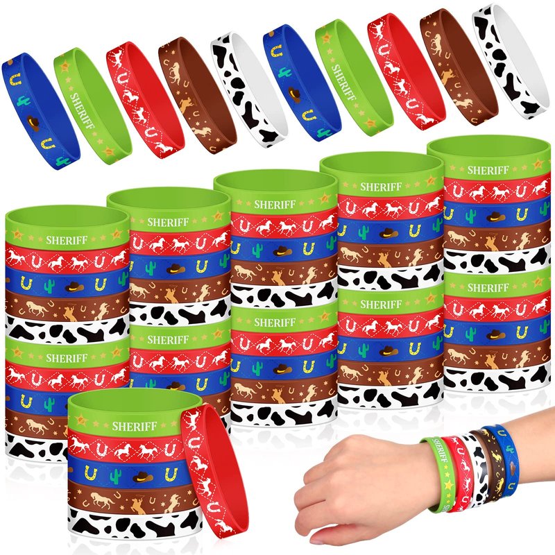 Kigeli 100 Pieces Cowboy Silicone Bracelets Wristbands for Kid Western Party Bracelets for Children Cowboy Cowgirl Party Favors