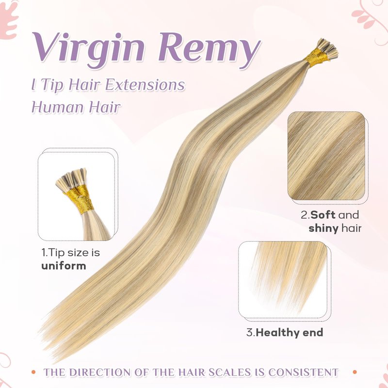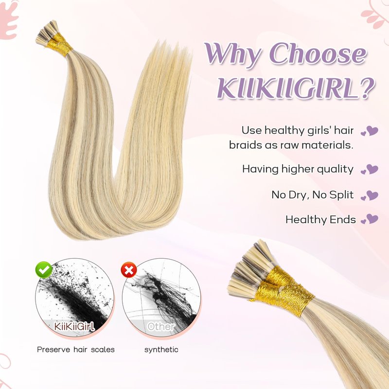 - 【Virgin Remy I Tip Hair Extensions Human Hair】 KiiKiiGirl specializes in producing tip human hair extensions. Made from the braids of healthy girls. The texture is better, and it feels noticeably smooth and soft. You can freely change the shape, straighten, and iron according to your own style. It is recommended to control the temperature below 180 ℃, as there may be slight color differences due to shooting lighting and display settings.