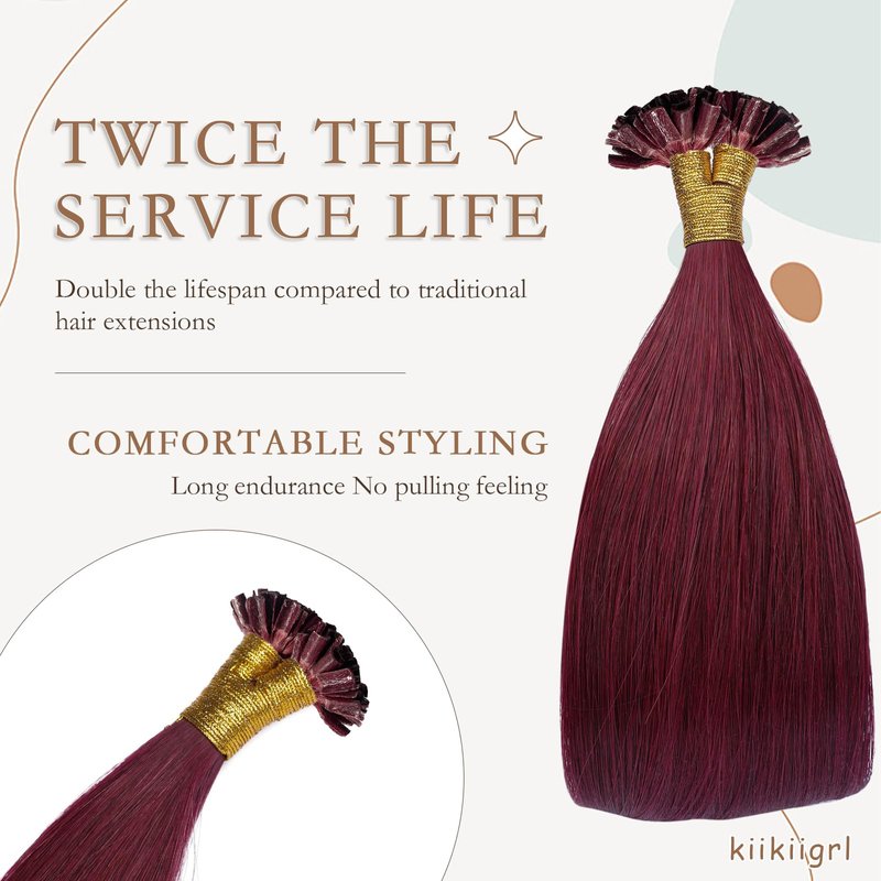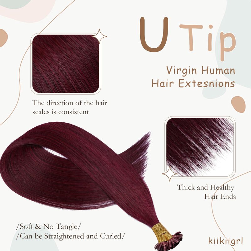- ♥【U Tip Hair Extensions Human Hair】 Why do more people choose U Tip hair extensions? U Tip keratin part adopts imported high-quality adhesives, there is no chance of allergy to your scalp, and the customer's comfort is guaranteed to the maximum. U-shaped extensions are longer lasting than clip-on extensions and more natural than seam extensions. With careful care, they can also be reused several times, and they have become the number one choice for hair extension users.
