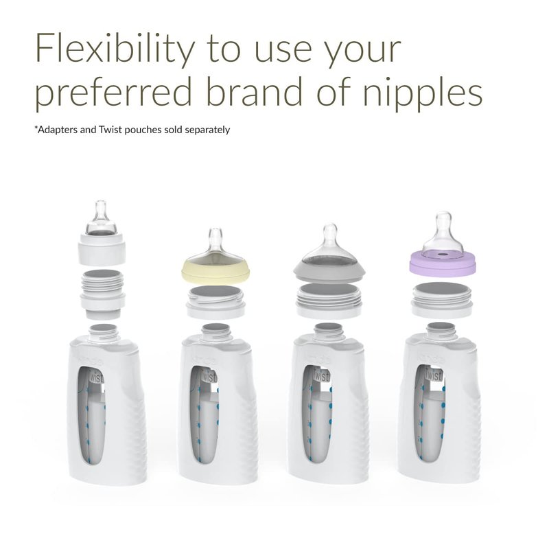 - Natural Nipple Design; Patented 1 piece Active Latch nipples attach directly onto Kiinde Twist Pouches; Provide a seamless transition between bottle and breast; Reusable nipple cases double as bottle covers