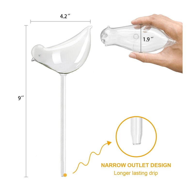 KiKiHeim Plant Watering Globes Self Watering Planter Insert, Bird Shape Self Watering Globes, Clear Glass Water Bulbs for Indoor Plants, Gifts for Plant Lovers