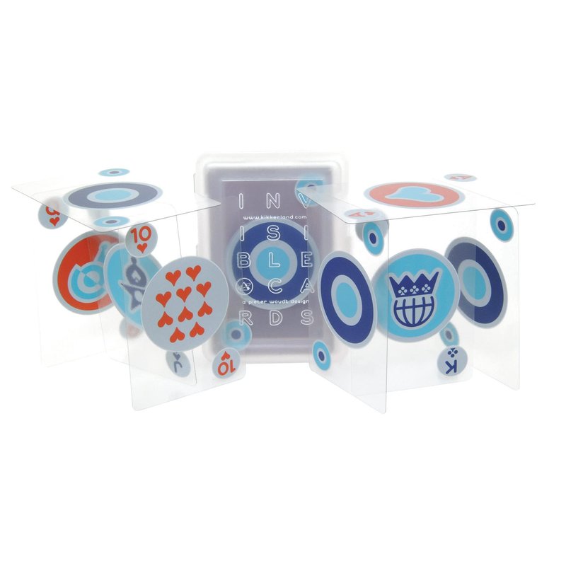 - Set of playing cards, printed on transparent PVC. Most of the card is transparent, only a small part has the design printed on it.