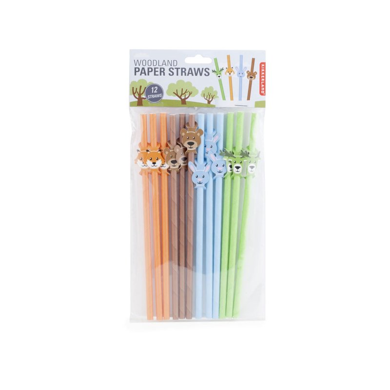 Kikkerland Woodland Paper Straws, Pack of 12, , Multicolor