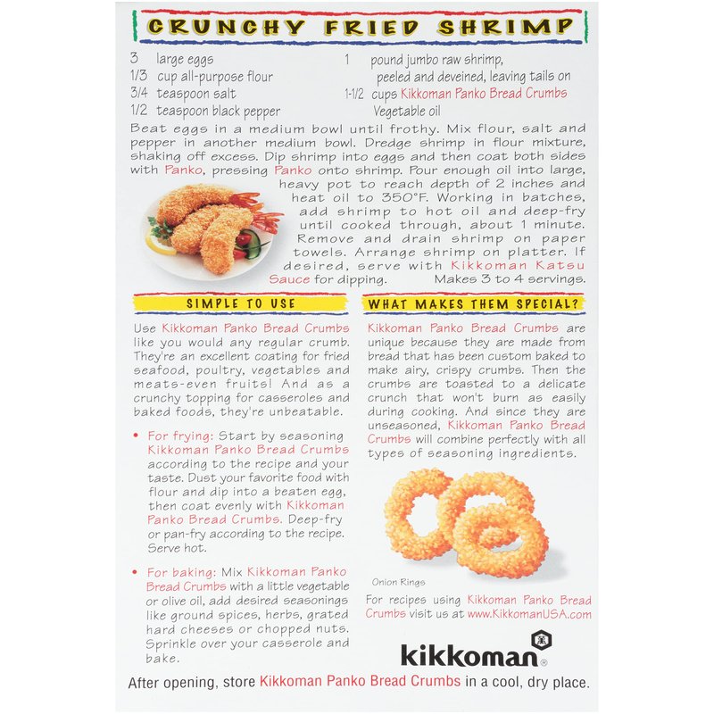 - Use Kikkoman Panko Bread Crumbs like you would any regular crumb.