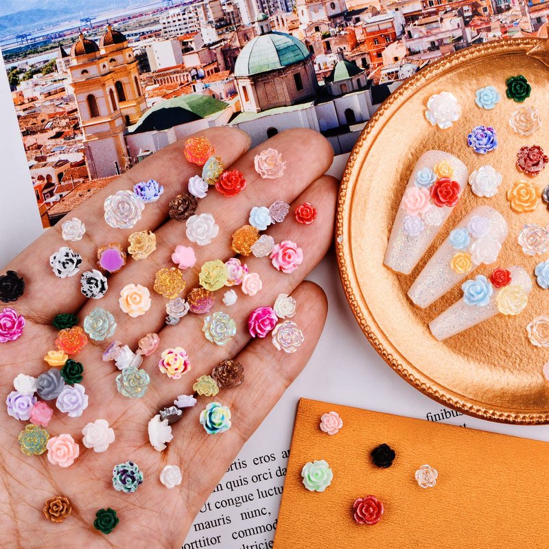 - Multiple Shapes and Colors: You will receive over 100 pieces resin rose nail art decorations in more than 20 different styles. With colorful 3D fashion effects and different colors and sizes, these nail art decorations are chic and beautiful, which can meet your rich imagination of nail decoration. Single size approximate: 6mm-9mm, suitable for all nails.
