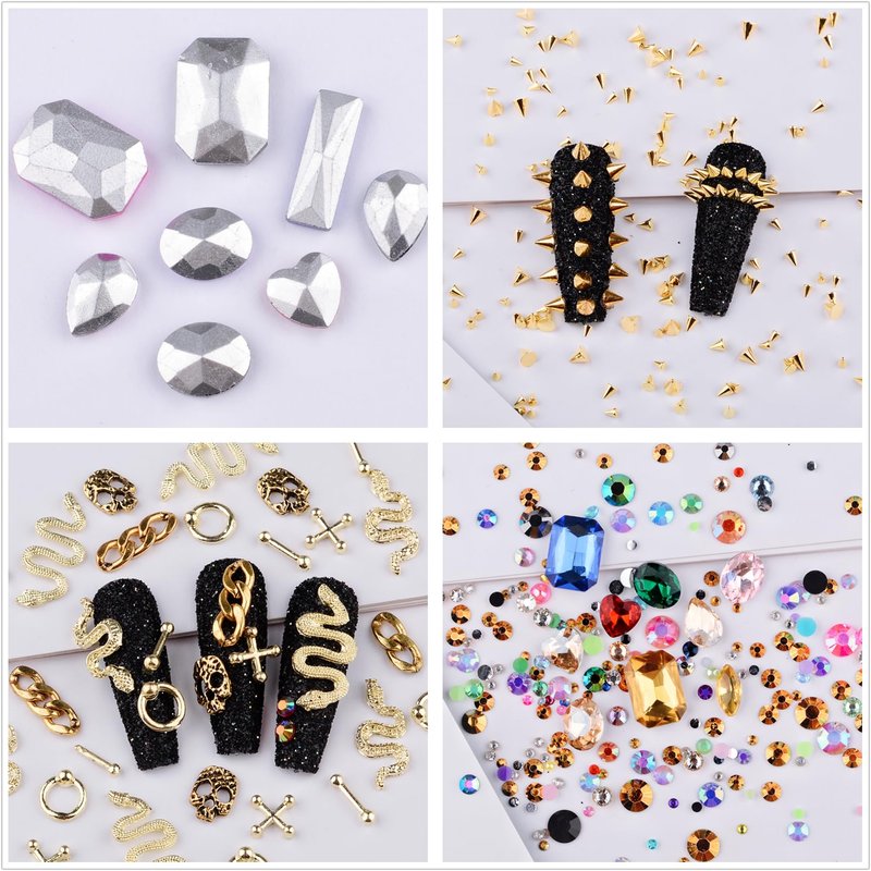 - Package include: 300 pcs cone rivet, 8 pcs big glass rhinestones, 27 pcs metal vintage charms, 200 pcs resin rhinestones.