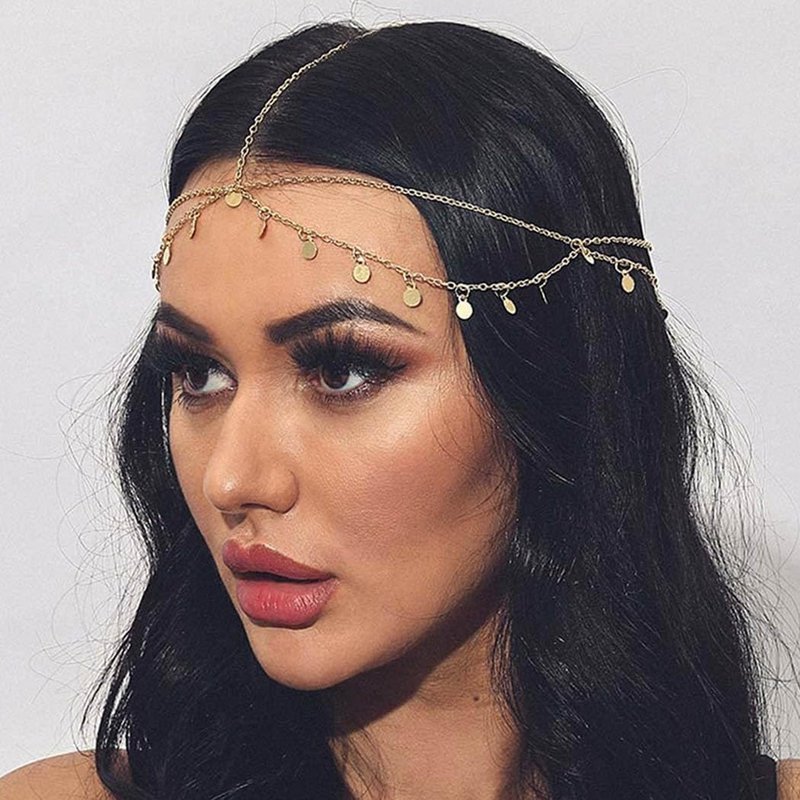 Gold Boho Sequin Head Chain Kilshye are specializing in women hair accessories. We are committed greatly fashion point for gold headpieces in heart of women. Meet their need and make you charming and dazzling in a crowd. Prom Costume Hair Chains Festival head chains are made of alloy and sequins. Unique design will make you charming. Gold coin headbands won't easy to broken and fade. Prom head jewelry adjustable size for women and girls. Sequins hair jewelry is fit for Halloween, festival, costume, prom, wedding, party and other occasion. Bohemian headpiece is a charming hairband for your friend, mom or daughter, they will happy to receive gold headwear. Bohe Headpiece for Women Kilshye brand create sequin headband for women, making you charming at any party. Gold hairband pass beautiful and happiness to our customers. We are committed to providing customers with Halloween hair chain jewelry and different hairstyles to meet their needs. Welcome to the Kilshye store!
