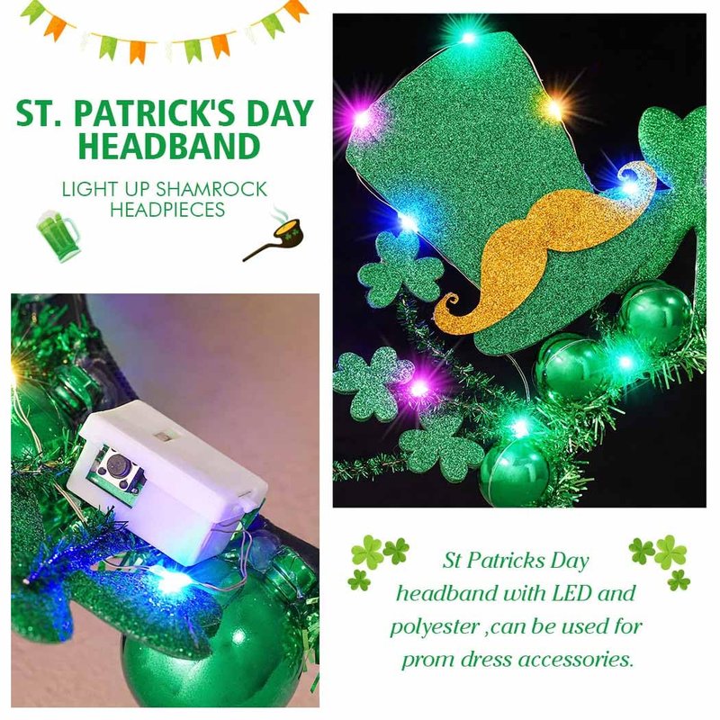 - Led festival hairband is perfect for St. Patrick's Day, party, cosplay, costume, photograph and so on. Make you eye-catching in a crowd.
