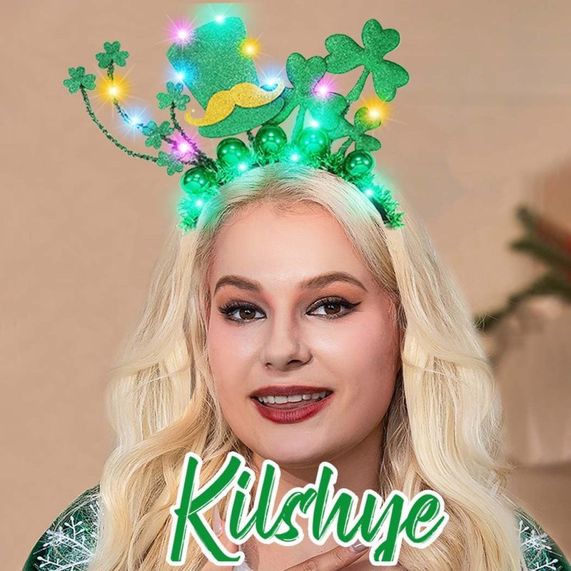 Kilshye St Patricks Day Light Up Headband LED Green Shamrock Hair Accessories Festival Headpiece for Women and Girls