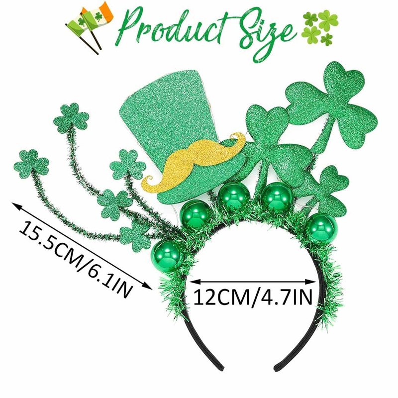 - Light up shamrock headbands approx size: 6.1*4.7inches/15*12cm length. Free size is suitable for women and girls.