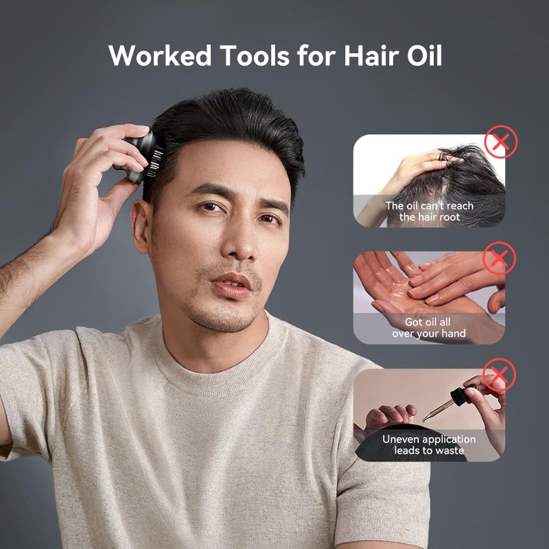 - [Easy to Grab & Portable] The surface of the hair oiler applicator brush is “S” ergonomic body design, not easy to slip, you can grab the body easily. Smooth liquid discharge, no battery required, slim and lightweight, it is portable to carry any where.