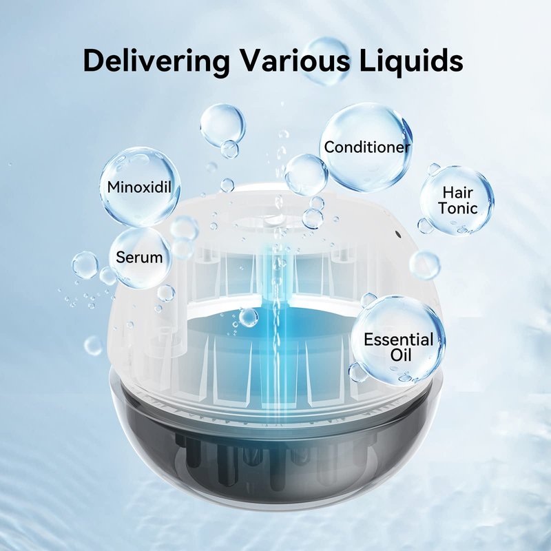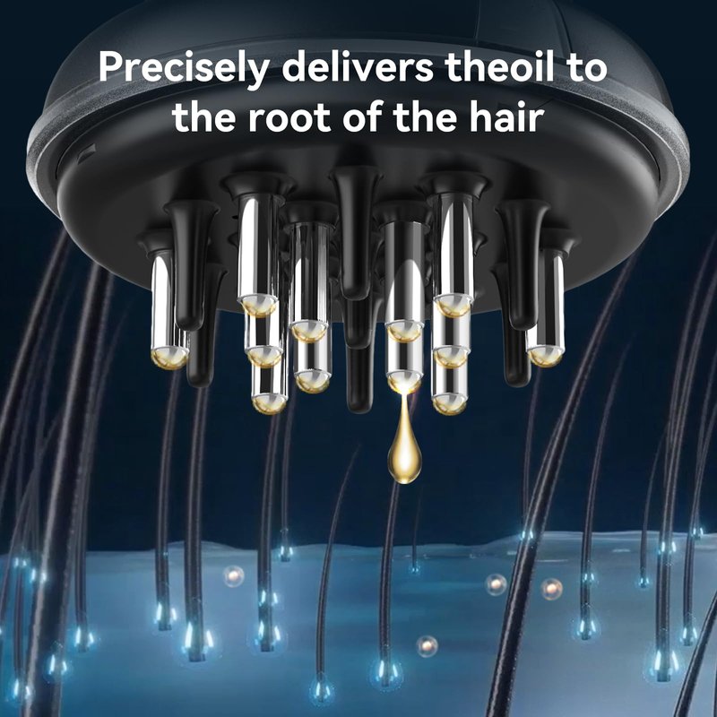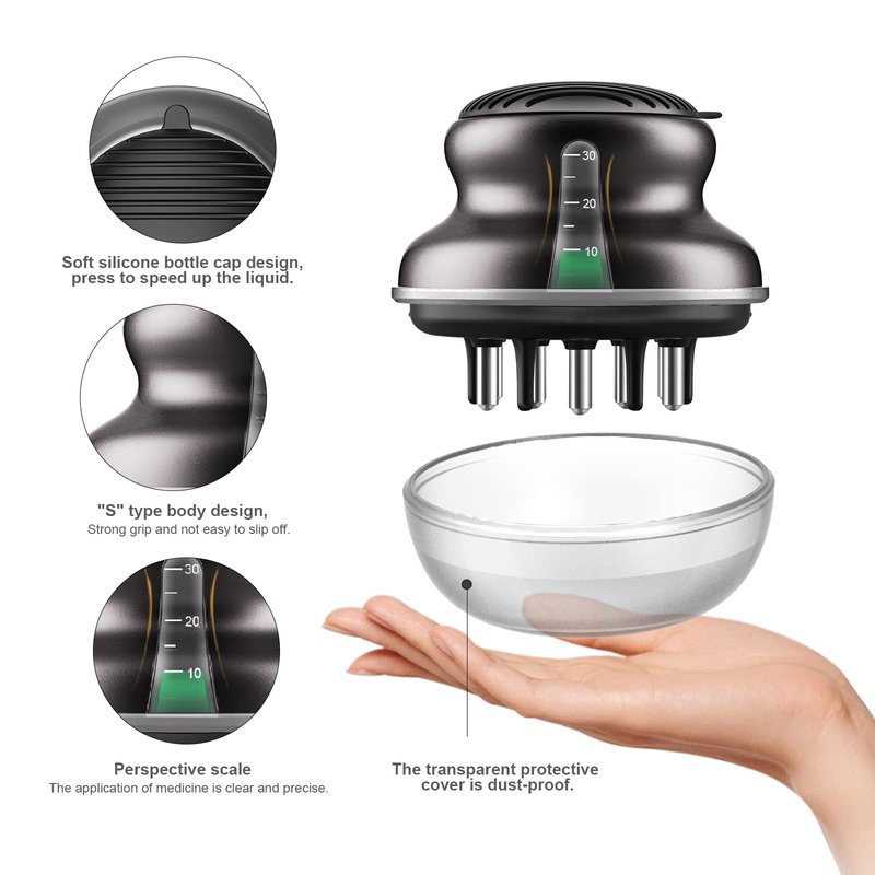 Using alloy materials, CNC machining accuracy error is only 0.01mm, pressing the ball to control the size and speed of the liquid, 7 auxiliary plastic combs, the scalp can be massaged at the same time, and the absorption of the liquid can be promoted.