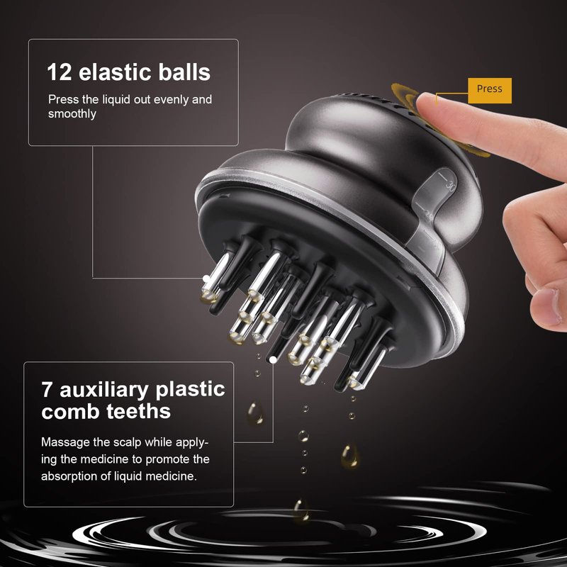 With 12 elastic balls, the liquid can be discharged evenly and smoothly by pressing; the soft silica gel presses the cover, the remaining liquid can be discharged smoothly, and the medicine is applied while combing the hair.