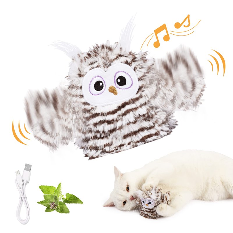 - 😻[Interactive Fun, Flappy and Chirpy] Craving a captivating companion to drive away your cat's boredom and loneliness? Here! Kimee's interactive cat toy—an enchanting owl that arouses your cat's hunting instinct and keeps them mesmerized. With its automatic melodic singing and lifelike wing flapping, your cats will be attracted by its curious movement!