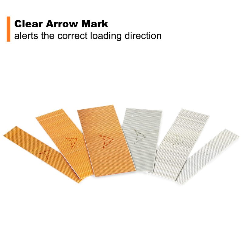 - 【Good Quality】◈Has high tensile strength & long durability; ◈Made of stainless steel, smooth surface, no flash, and anti-corrosion. Less jamming; ◈ A obvious arrow mark on each row of nails to alert loading nails in the right direction