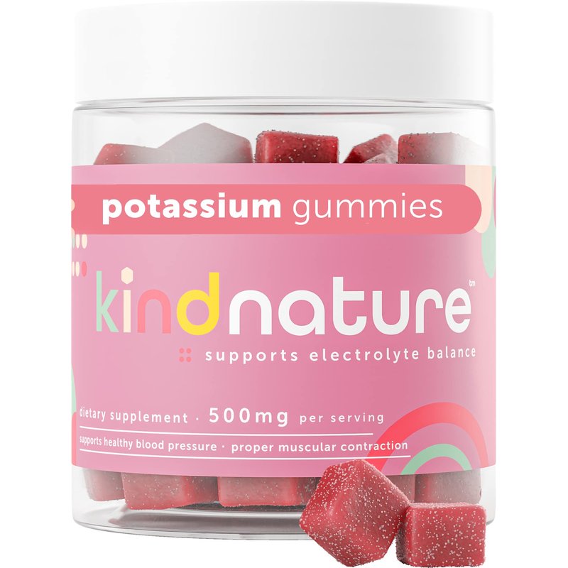 - World's First Pure Potassium Gummies – Kind Nature potassium supplement is the first pure 500 mg per serving potassium bicarbonate to come in the form of delicious chewable gummies