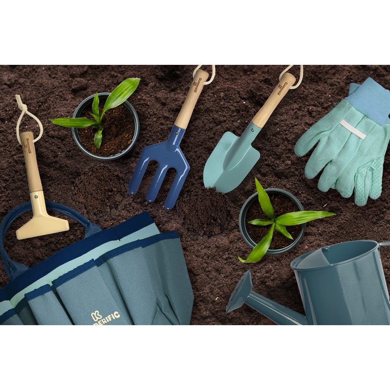 Kinderific Gardening Set, Tool Kit, for Kids, STEM, Includes Tote Bag, Spade, Watering Can, Rake, Fork, Trowel and Gloves (Blue)